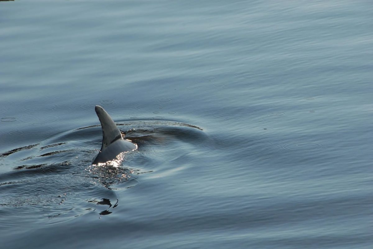 A dolphin swims through the water in the Launch Complex 39 Area turn basin at NASA’s Kennedy Space Center in Florida on Nov. 6, 2007. The turn basin was carved out of the Banana River when NASA Kennedy was built. Dolphins are a frequent sight in the rivers around Kennedy, which shares a boundary with the Merritt Island Wildlife Nature Refuge.