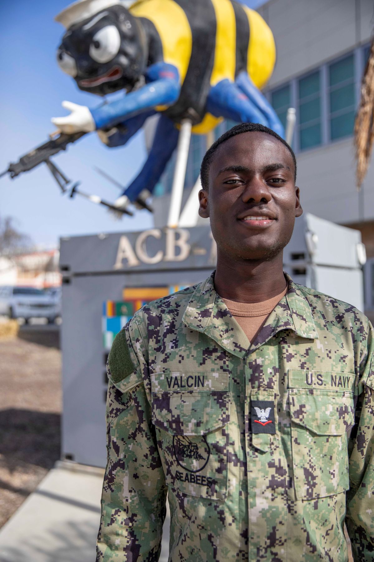 SAN DIEGO – Petty Officer 3rd Class Jahein Valcin, a native of Pittsburgh, Pennsylvania, serves the U.S. Navy at Amphibious Construction Battalion (ACB) 1 operating out of San Diego, California.