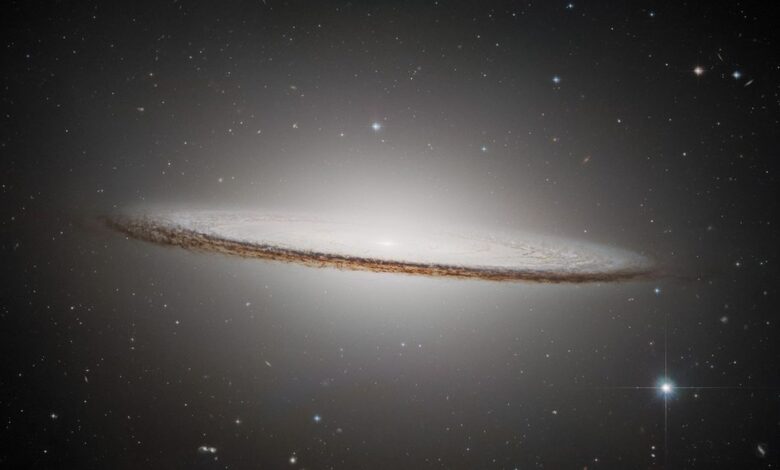 Located around 30 million light-years away in the constellation Virgo, the Sombrero Galaxy is instantly recognizable. Viewed nearly edge on, the galaxy’s softly luminous bulge and sharply outlined disk resemble the rounded crown and broad brim of the Mexican hat from which the galaxy gets its name.