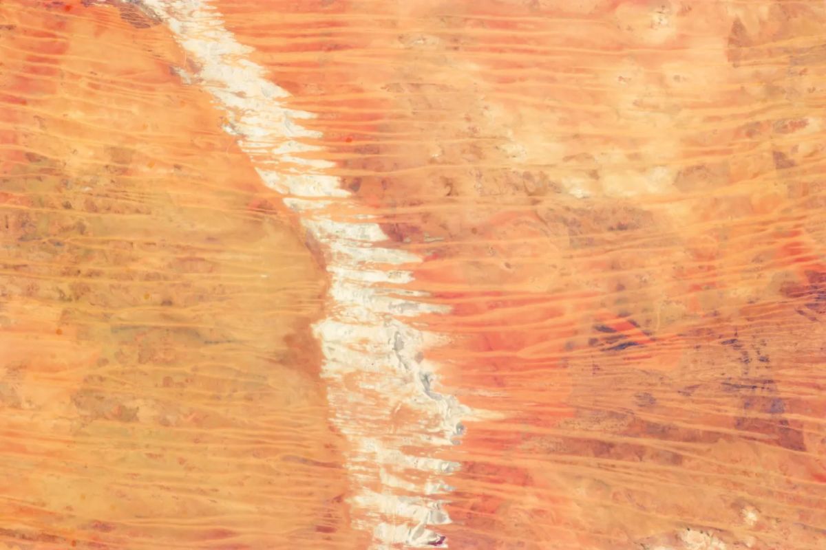 On March 25, 2013, an astronaut aboard the International Space Station took this photo of the Great Sandy Desert in northwest Australia, showcasing linear dunes separated in a roughly regular fashion. When you fly over such dune fields—either in an airplane or the space station—the fire scars stand out. Where thin vegetation has been burned, the dunes appear red from the underlying sand; dunes appear darker where the vegetation remains.