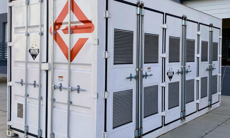 EnerVenue’s batteries don’t require energy-consuming temperature control or maintenance and can be stored anywhere, including in the company’s “EnerStation” battery station, pictured here.