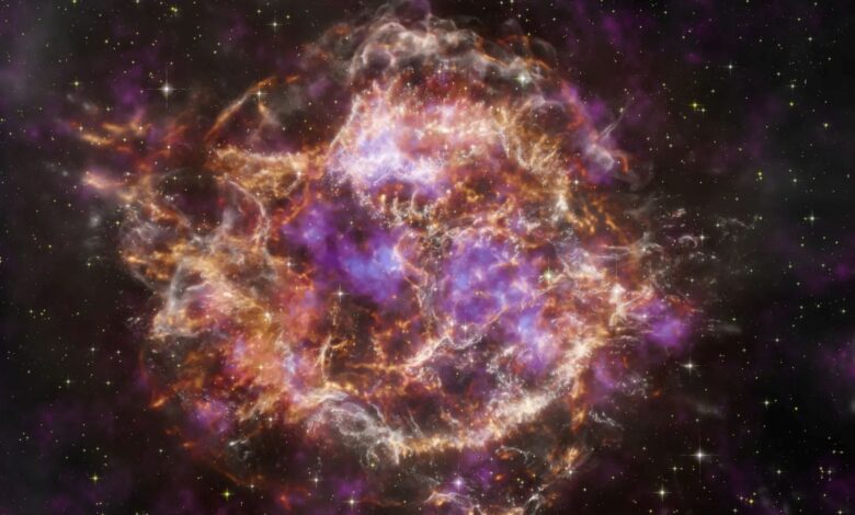 Using NASA’s James Webb Space Telescope, astronomers uncovered a mysterious feature within the remnant, nicknamed the “Green Monster,” alongside a puzzling network of ejecta filaments forming a web of oxygen-rich material. When combined with X-rays from Chandra, the data helped astronomers shed light on the origin of the Green Monster and revealed new insights into the explosion that created Cas A about 340 years ago, from Earth’s perspective.