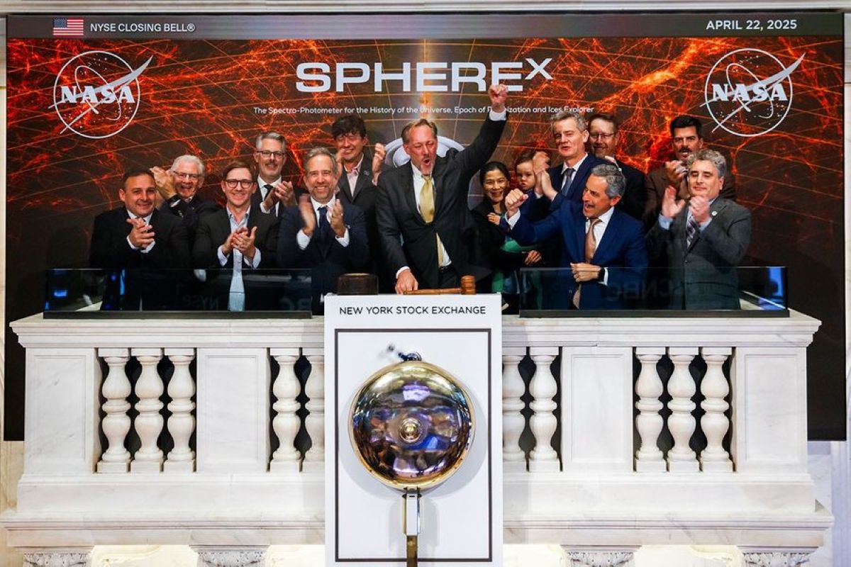 Members of NASA’s recently launched SPHEREx (Spectro-Photometer for the History of the Universe, Epoch of Reionization and Ices Explorer) mission team participated in the New York Stock Exchange’s closing bell ceremony in New York City on April 22.
