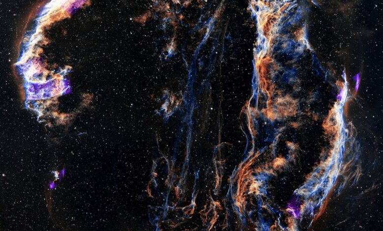 The Cygnus Loop, also known as the Veil Nebula, is a supernova remnant – the remains of the explosive death of a massive star. Studying images like these leads to discovery, but NASA’s Chandra X-ray Observatory provides another way to experience this data: three-dimensional (3D) models that allow people to explore – and print – examples of stars in the early and end stages of their lives.