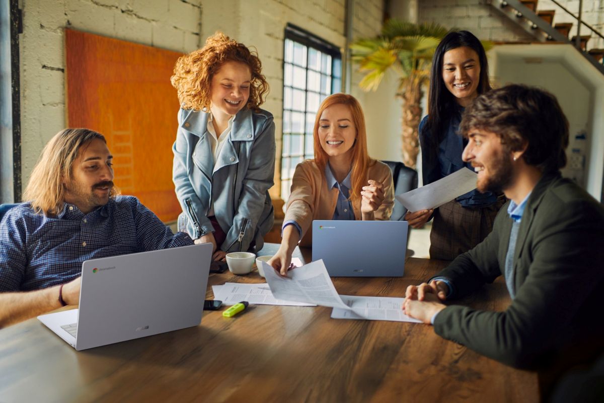 Designed for portability with a weight starting at about 3lbs, the ASUS Chromebook CX14/CX15 series features an expansive FHD wide-viewing-angle display with up to an 87% screen-to-body ratio2, delivering an immersive visual experience. Its 180° hinge supports versatile usage scenarios, and a touchscreen is available as an option.