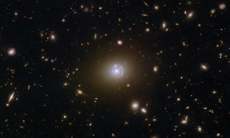 The partial Einstein ring in this image is not only beautiful, but noteworthy. A citizen scientist identified this Einstein ring as part of the SPACE WARPS project that asked citizen scientists to search for gravitational lenses in images.