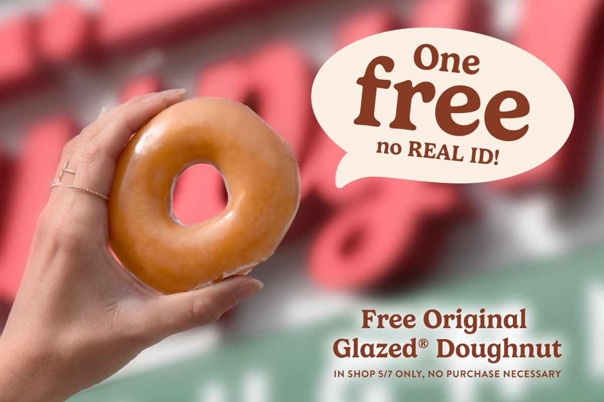 As Americans race to state DMVs to meet the May 7 REAL ID deadline, Krispy Kreme® is sweetening the rush – and relieving the stress – with a surge of FREE Original Glazed® Doughnuts.