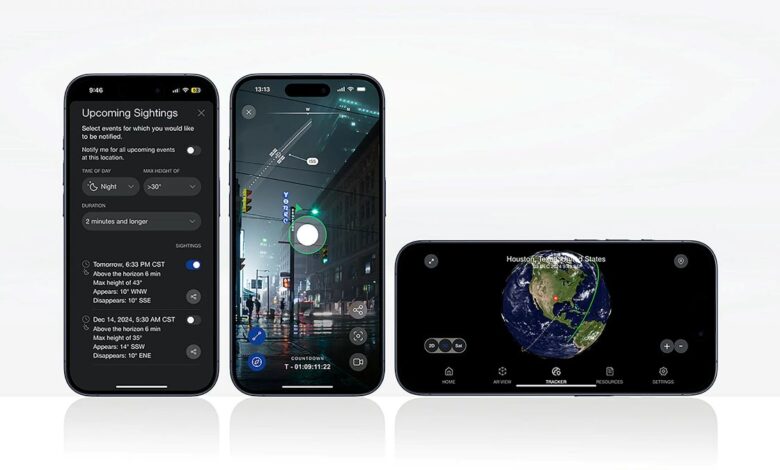 The augmented reality feature within the Spot the Station mobile app visually guides users to locate the International Space Station at the precise time it appears in the sky. Coupled with the app’s alerts, it enhances the ability to see the station by providing a live, visual direction and height indicator to precisely track it.