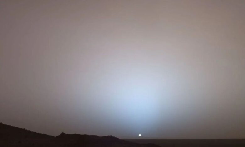 NASA’s Mars Exploration Rover Spirit captured this stunning view as the Sun sank below the rim of Gusev crater on Mars 20 years ago. In this image, the bluish glow in the sky above the Sun would be visible to us if we were there, but an artifact of the panoramic camera’s infrared imaging capabilities is that with this filter combination, the redness of the sky farther from the sunset is exaggerated compared to the daytime colors of the Martian sky.
