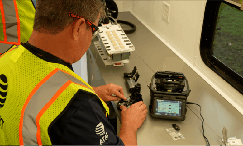 AT&T Network technician demonstrates fiber splicing which brings transformative, high-speed internet access to millions of homes and businesses.