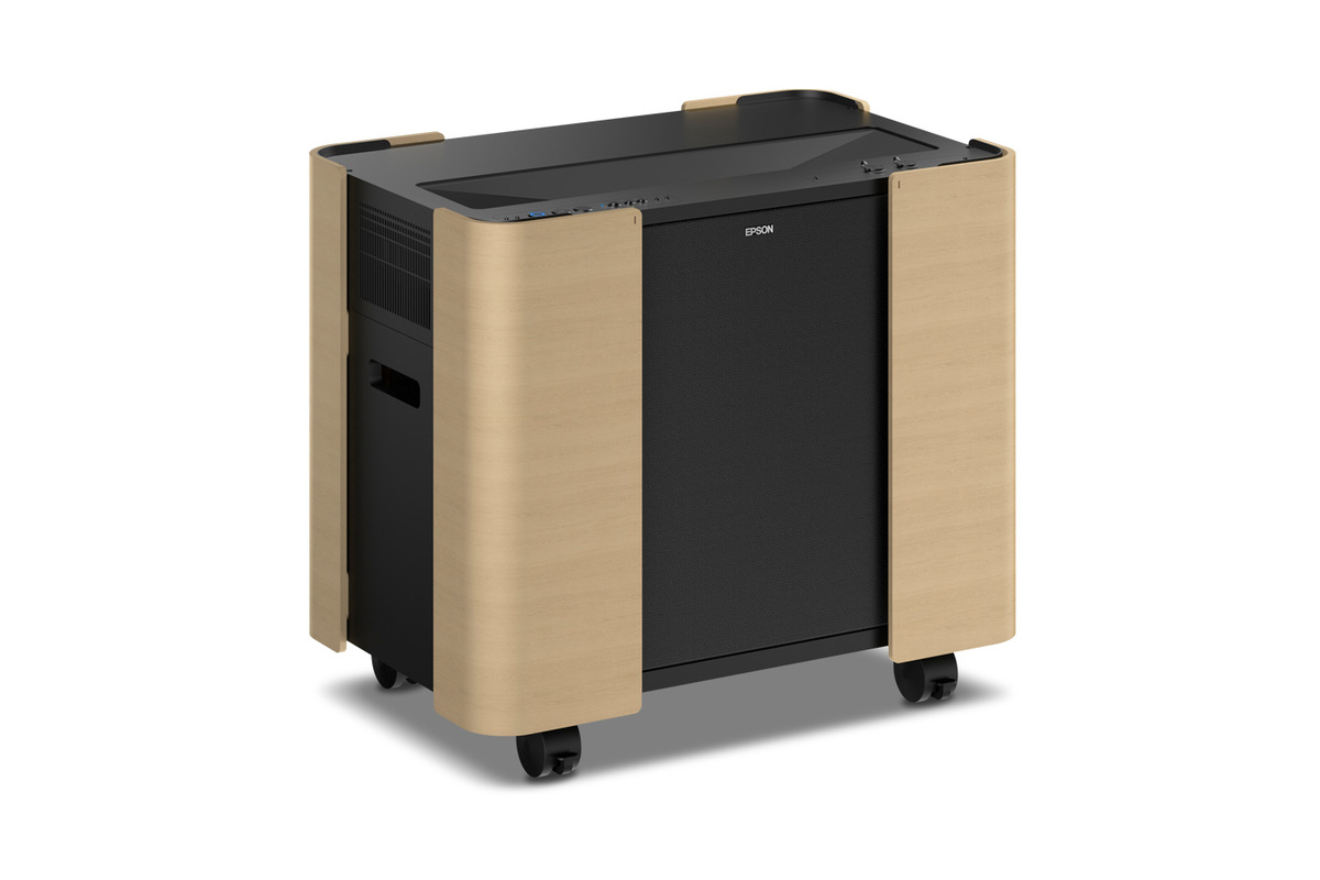 - Mobi™ Projector Cart: Take learning on the go and transform any wall into a larger-than-life display with this mobile solution. Designed for the PowerLite 810E/815E extreme short throw projectors (sold separately), this sleek and versatile mobile projector cart features locking casters and low center of gravity for easy maneuverability without tipping risk, enabling effortless projection up to 160 inches – four times the size of a 75-inch flat panel – while placed inches from the wall. A true mobile solution, it has a smartly designed on-board control panel, USB hub, storage, and built-in Wi-Fi® and Miracast®.