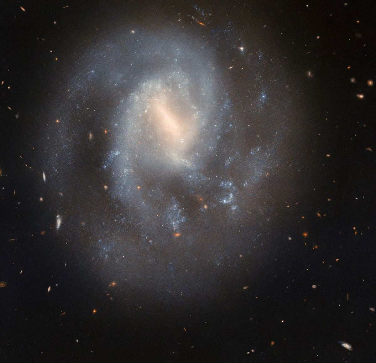 This serene spiral galaxy hides a cataclysmic past. The galaxy IC 758, shown in this NASA/ESA Hubble Space Telescope image, is situated 60 million light-years away in the constellation Ursa Major.
