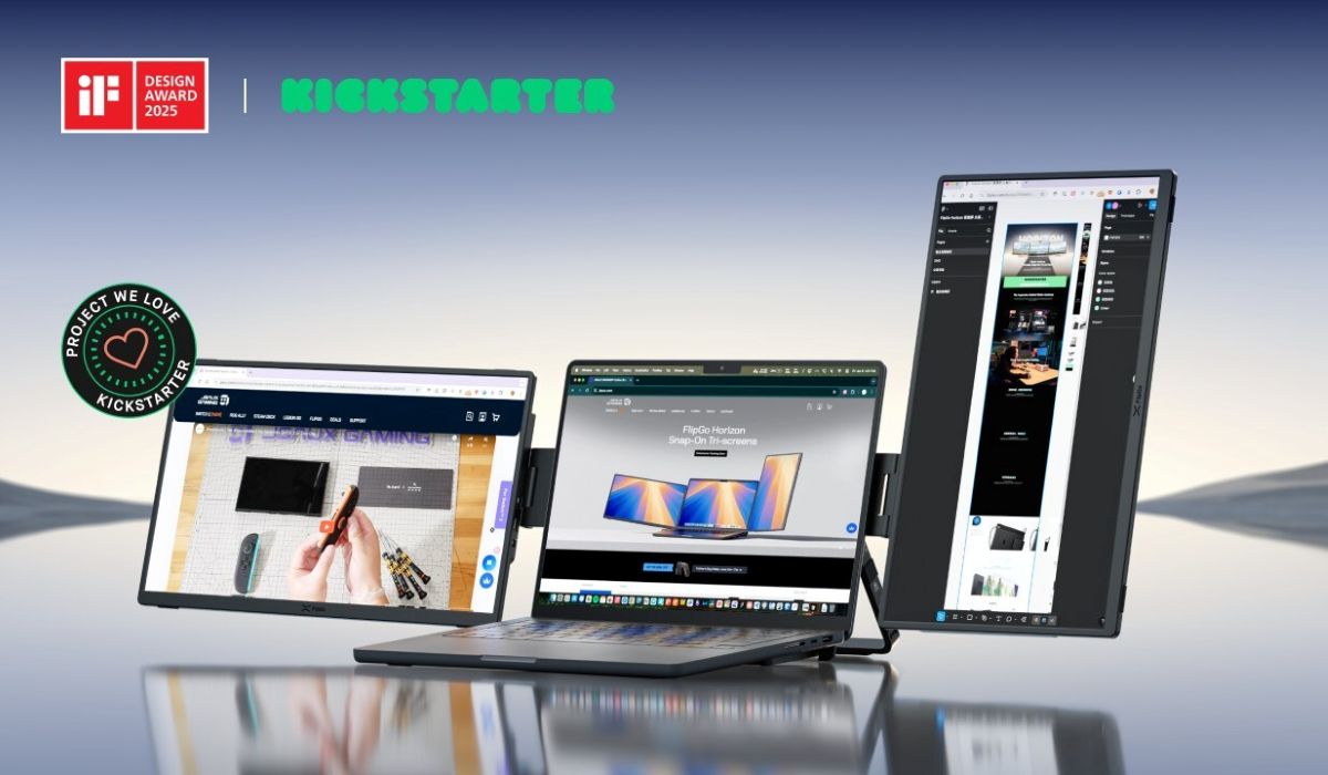 Tech manufacturer JSAUX announces that the latest iteration in the FlipGo family of portable monitors — the iF Design Award-winning FlipGo Horizon — is now available on Kickstarter. The FlipGo Horizon adds two screens to your laptop and lets users decide how to position them: both horizontally, both vertically, or one in each orientation. The FlipGo Horizon is available at a Super Early Bird price of $359, with a high-end version that includes an upgraded expansion stand for $399 — both available in limited quantities. The crowdfunding campaign runs until July 27.