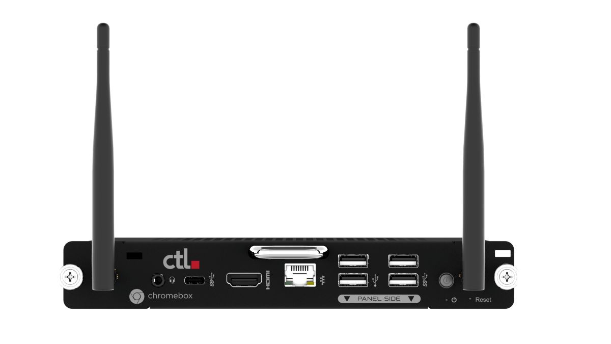 The CTL Chromebox OPS OPx1-3 offers a powerful and practical solution for modernizing and streamlining display technologies for schools, enterprises, retail outlets, healthcare providers, and other organizations where interactive panels, digital signs, and kiosks are used. Available in an 8GB RAM / 256 GB eMMC storage configuration, the new CTL Chromebox OPS OPx1-3 enables IT teams to: