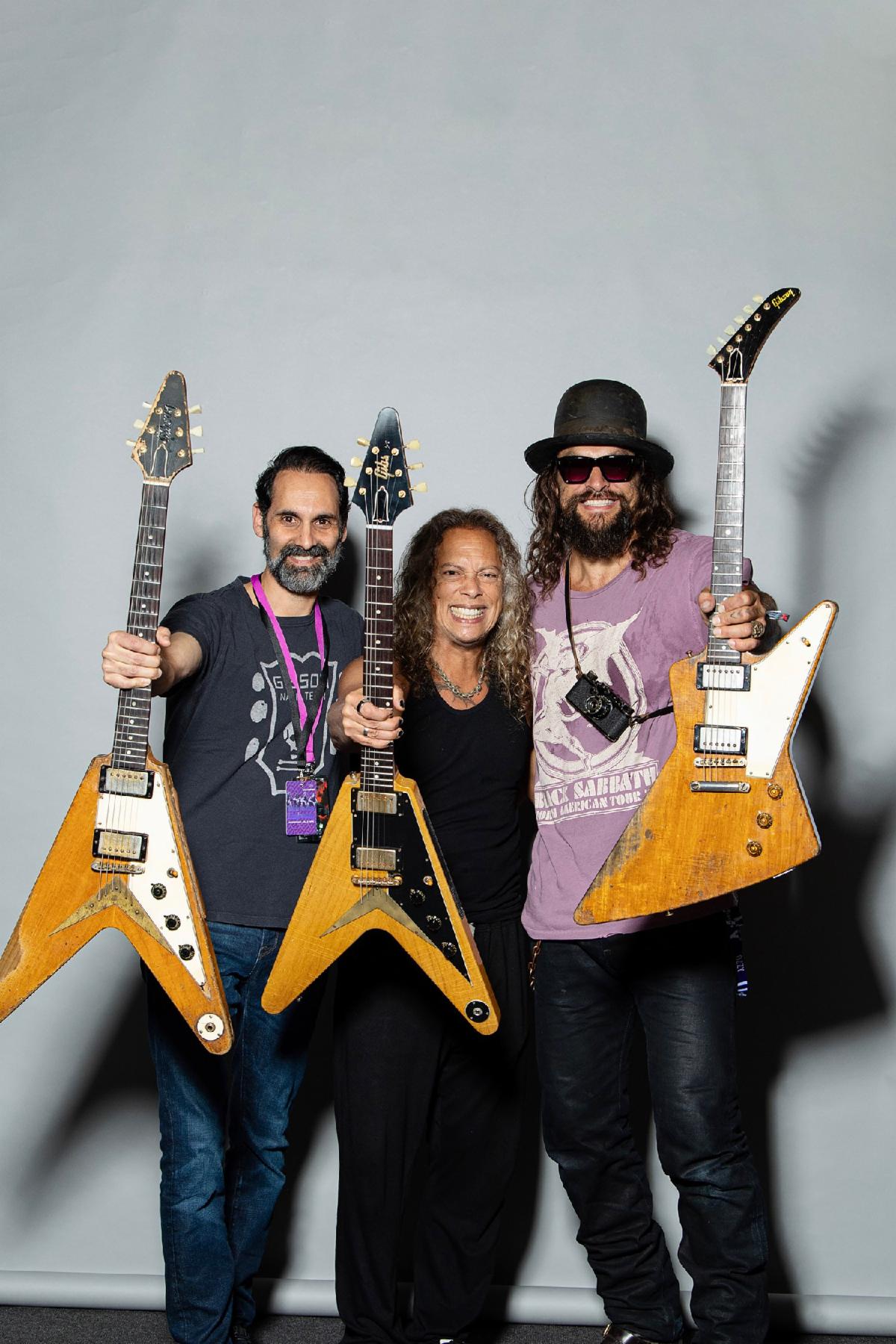 | Cesar Gueikian, Kirk Hammett, and Jason Momoa. Credit: Ross Halfin. |