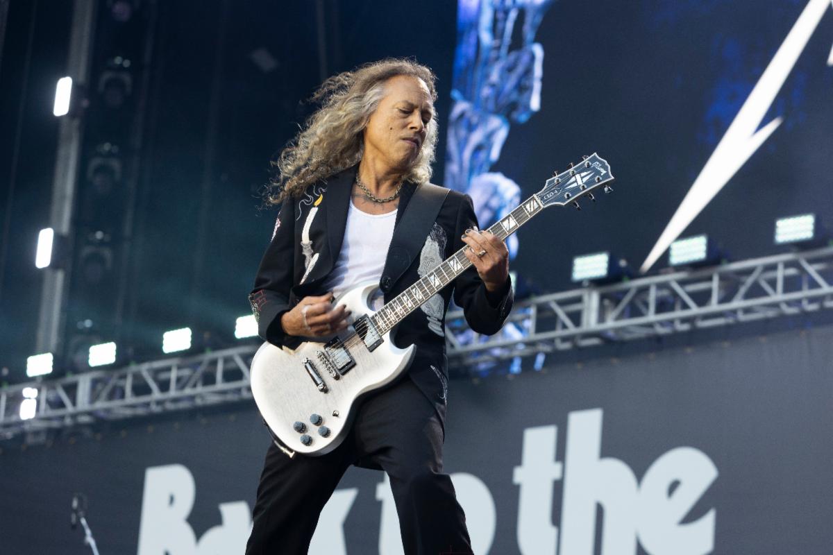 | Kirk Hammett backstage at Back to the Beginning. Credit: Gibson. |