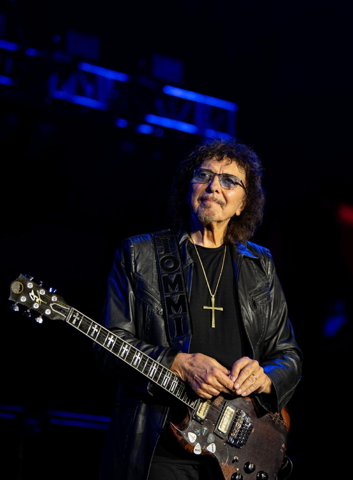 Tony Iommi performs at Back to the Beginning. Credit: Ross Halfin.