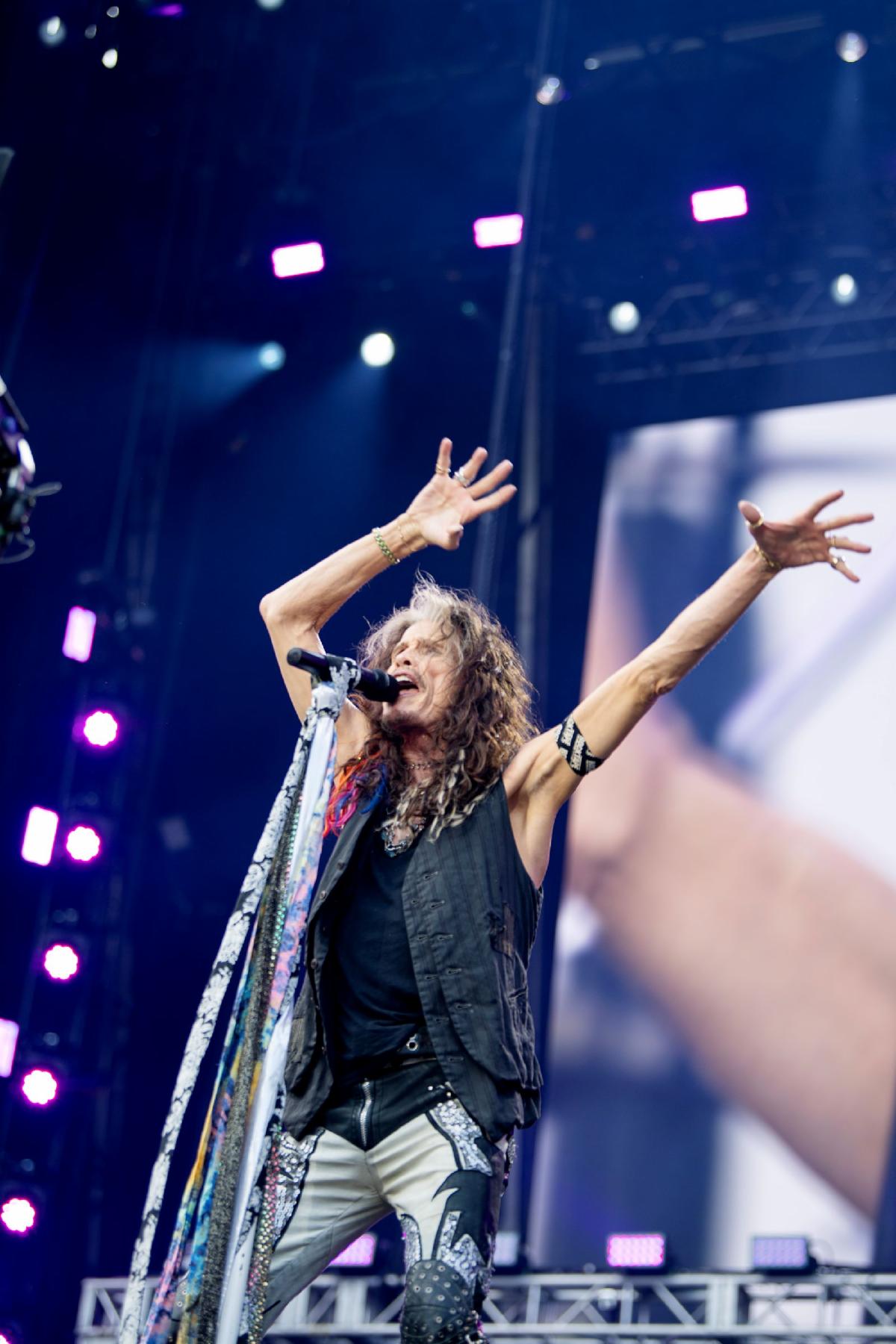 | Steven Tyler performs at Back to the Beginning. Credit: Ross Halfin. |