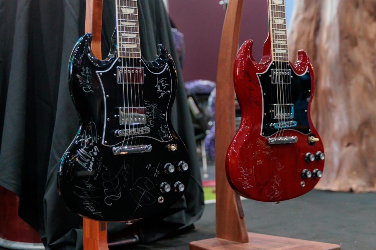 | Gibson SG Standard guitars were signed by the artists performing for the Back to the Beginning auction. Credit: Gibson. |