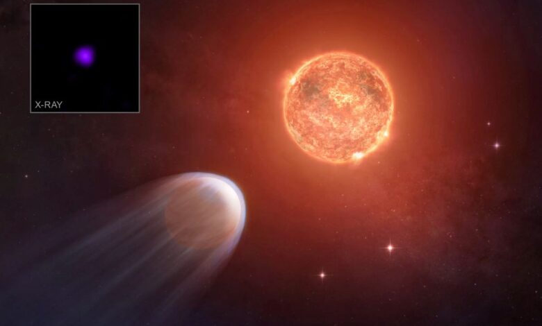 This transformation is happening as the host star unleashes a barrage of X-rays that is tearing the young planet’s atmosphere away at an enormous rate.