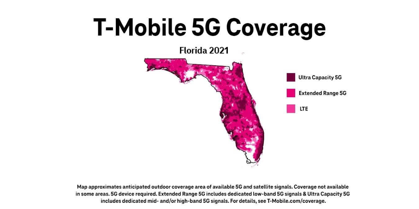 - Coverage: Nearly 100% of Floridians are now covered by T-Mobile’s 5G network.