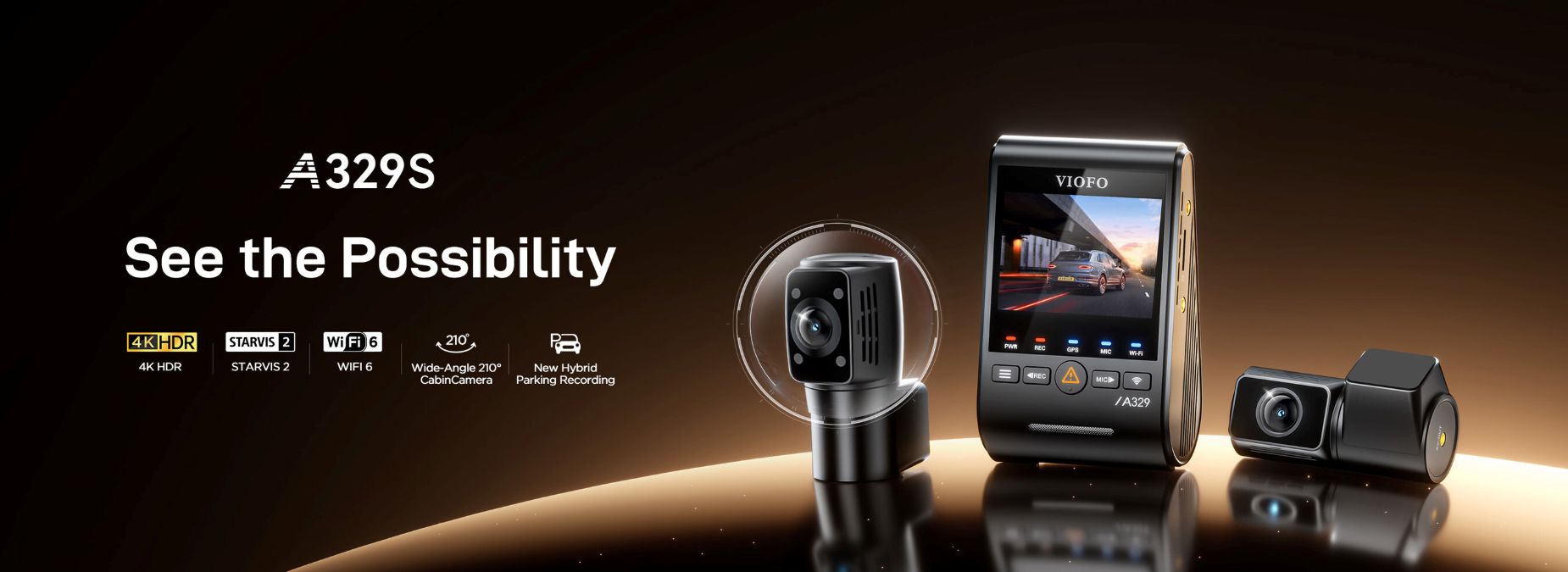 Equipped with a 2K infrared fisheye cabin camera, a 4K front, and a 2K rear camera, the A329S 3CH delivers sharp, reliable footage every time. Powered by the Sony STARVIS 2 IMX675 sensor, the A329S fisheye cabin cam is VIOFO’s first interior camera with a 210° FOV and 2K resolution. It offers enhanced clarity and a wider view inside and out. The A329S is packed with more upgraded features and offers flexible bundle options tailored for different setups — whether driver’s driving solo, with family, or managing a fleet.
