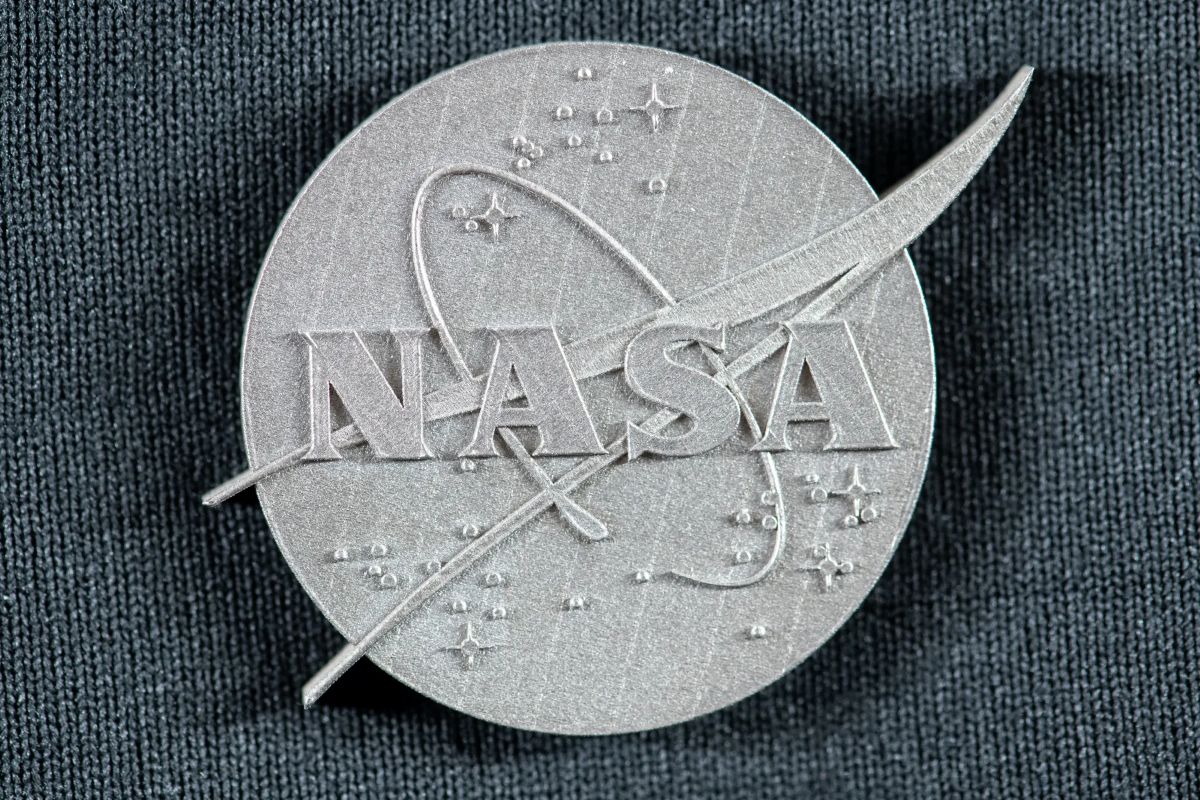 The NASA insignia is 3D printed using the GRX-810 superalloy.