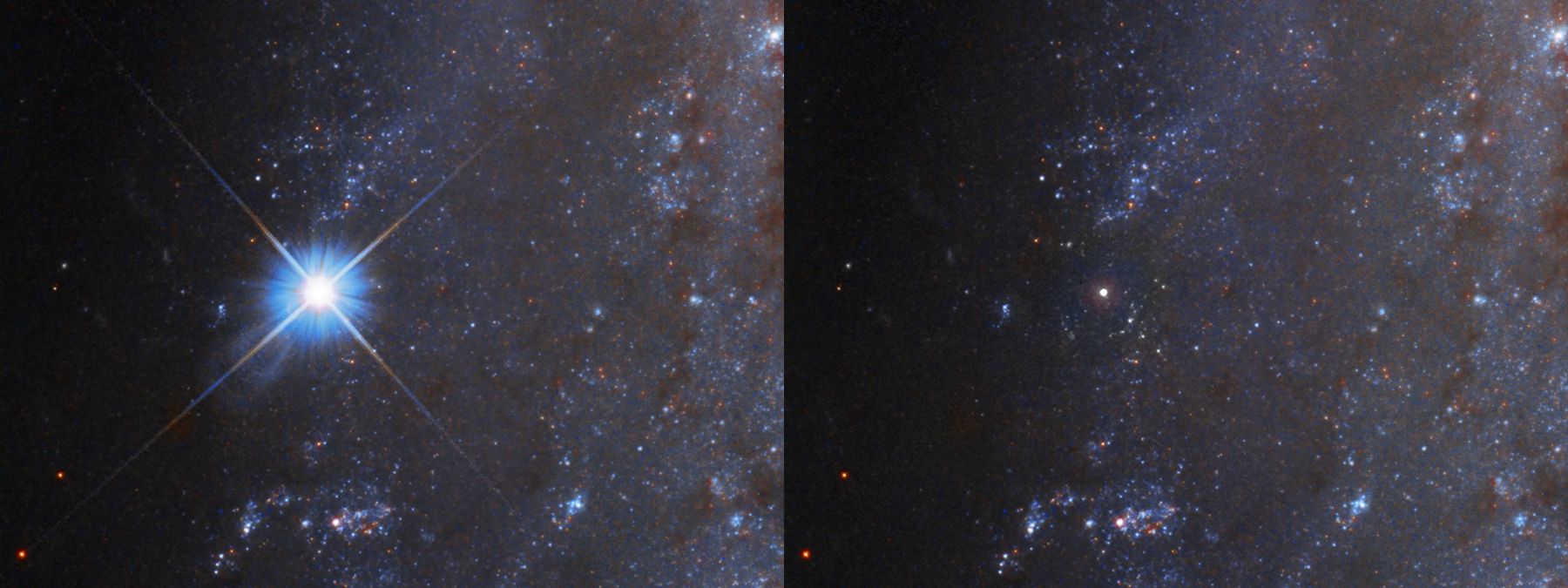 These two images, taken one year apart by NASA’s Hubble Space Telescope, show how the supernova designated SN 2018gv faded over time. The High-Latitude Time-Domain Survey by NASA’s Nancy Grace Roman Space Telescope will spot thousands of supernovae, including a specific type that can be used to measure the expansion history of the universe.