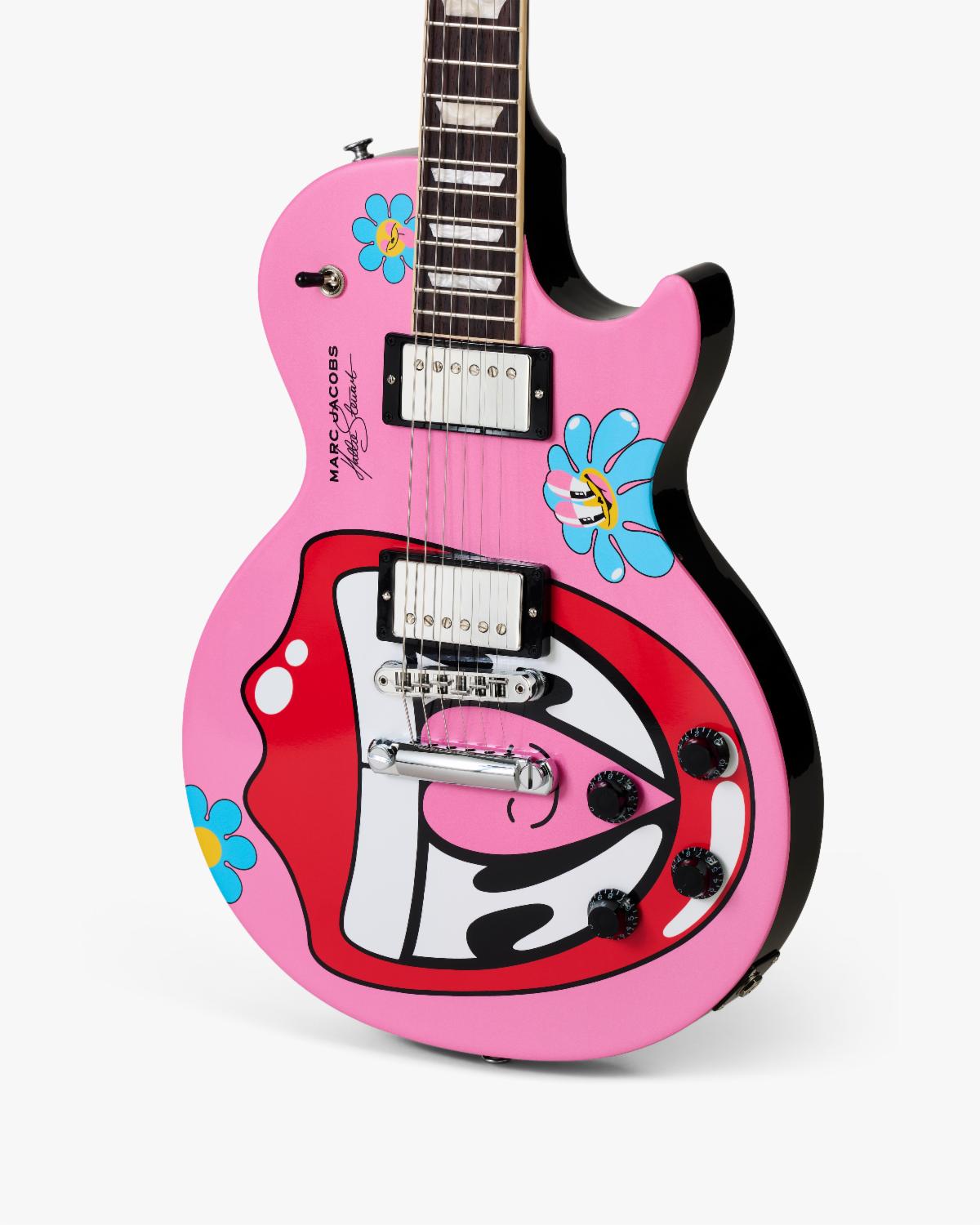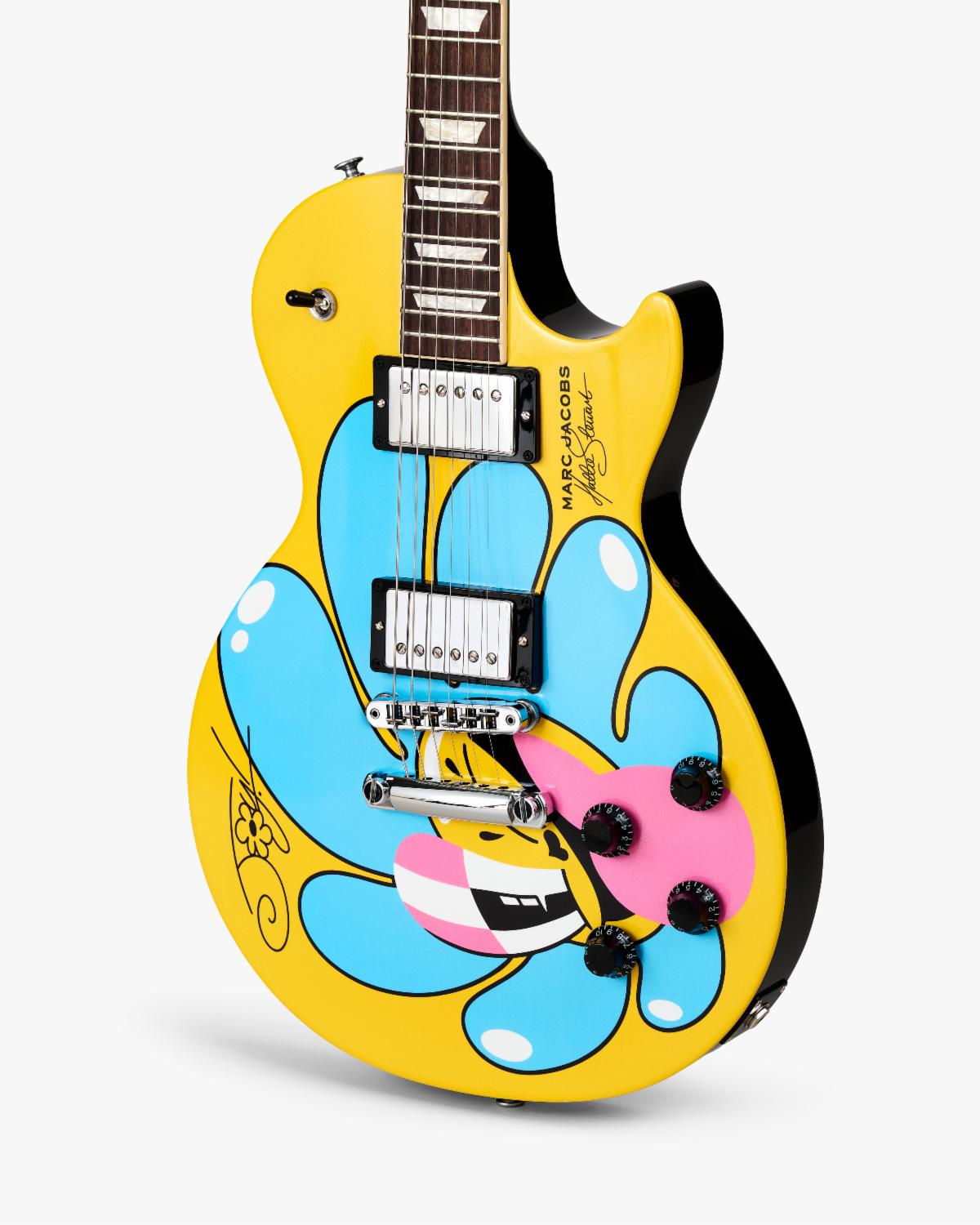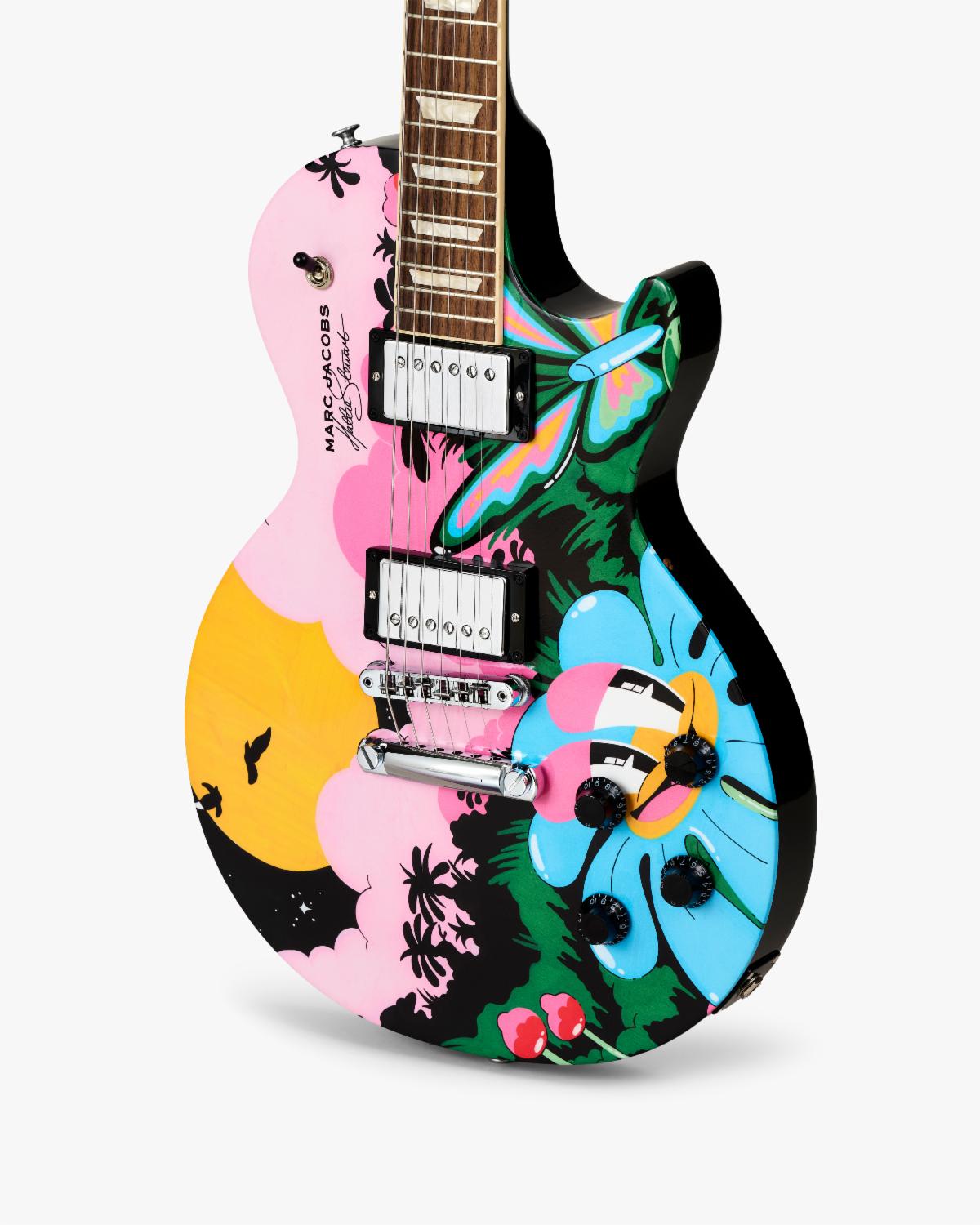 Above: Gibson x Marc Jacobs JOY capsule collection Gibson Les Paul Studio guitars featuring artwork from Hattie Stewart.