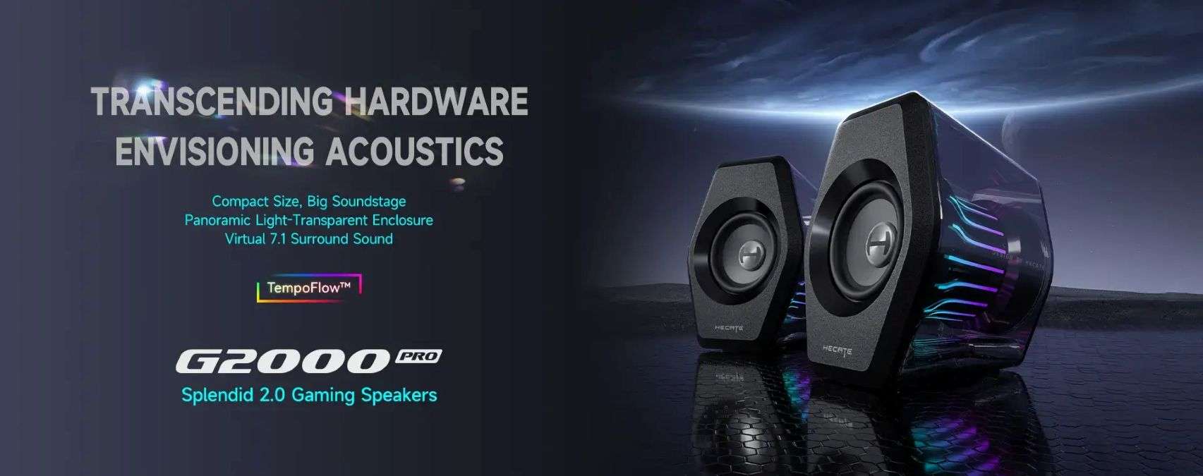Featuring 7 built-in dynamic lighting modes, customizable via the HECATE Gaming Center software. Break free from dull surroundings and enjoy a vibrant, sound-responsive atmosphere like never before.