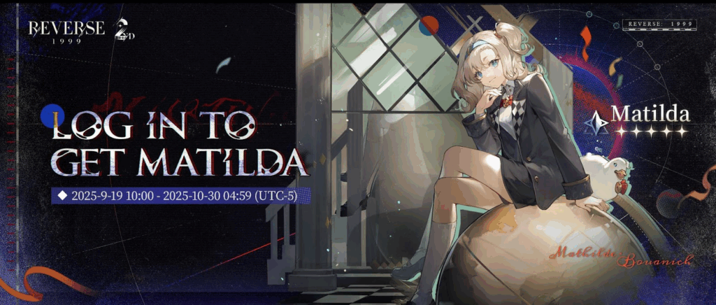 - Free 5-star Matilda: Log in during Version 2.8 to get 5-star character Matilda for free.