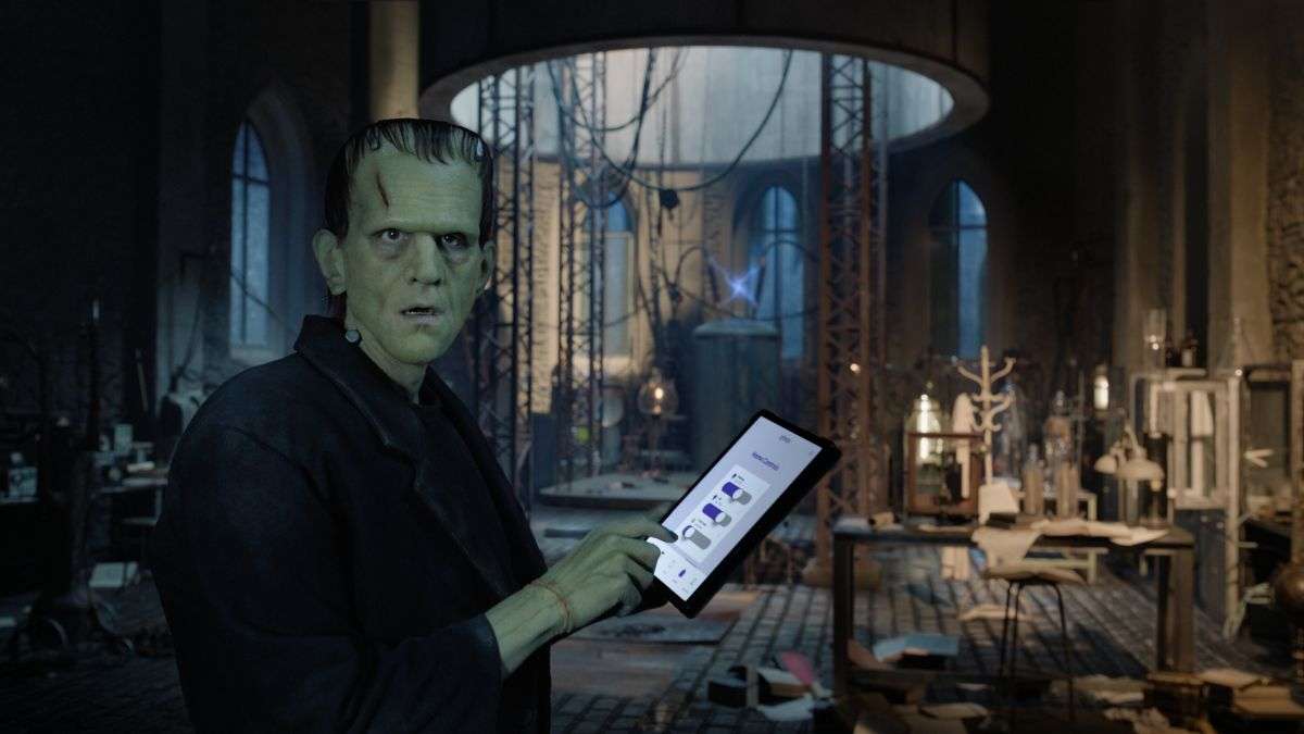 To create the “Imagine That” short film, Comcast’s Xfinity tapped into the timeless world of Universal Monsters. In collaboration with Universal Pictures and the Universal Parks team, the production rebuilt the intricate medieval lab of Dr. Frankenstein, as seen in “Monsters Unchained: The Frankenstein Experiment” ride at Epic Universe’s Dark Universe. With the help of the parks’ masterful make-up and prosthetic artists, Frankenstein’s look was faithfully reinvented – from his unmistakable green complexion to the square head, neck bolts, and boots that have made him a cultural legend.