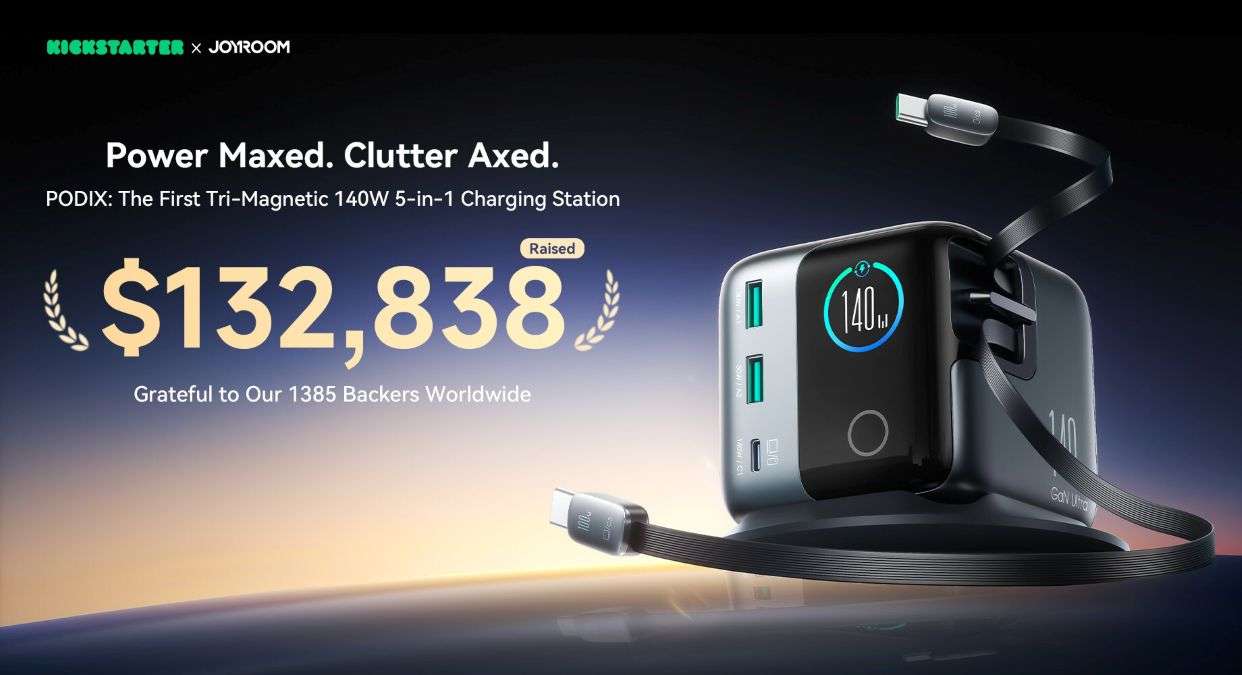 JOYROOM, a global consumer electronics brand beloved by young users across more than 130 countries, announced today the successful completion of its Kickstarter campaign for the JOYROOM PODIX, the world’s first Tri-Magnetic 140W 5-in-1 GaN Charging Station. In just one month, the campaign raised over $132,000—an astonishing 6633% of its original goal—backed by 1,385 supporters worldwide.