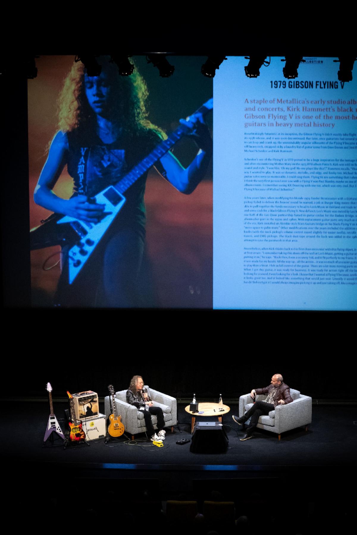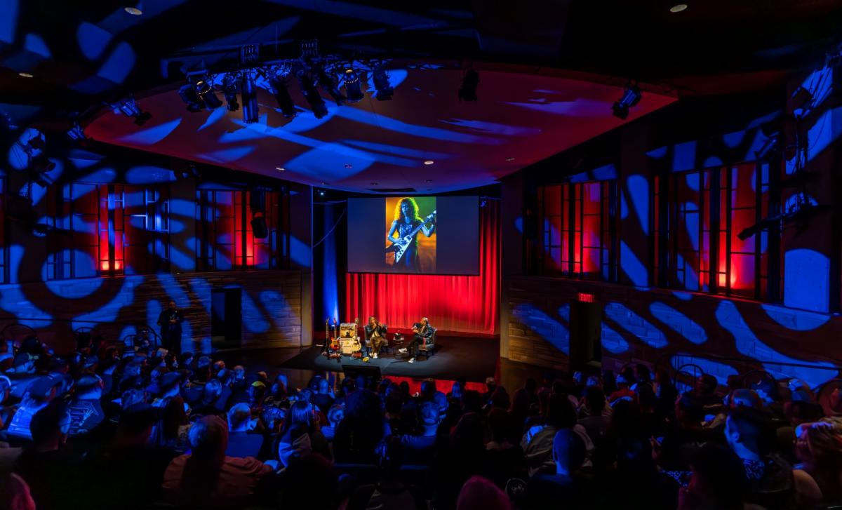 Above: Kirk Hammett and Mark Agnesi at the “KIRK HAMMETT The Collection: Live” book tour at Ford Theater at the Country Music Hall of Fame and Museum in Nashville. Photo credit: Amiee Stubbs.