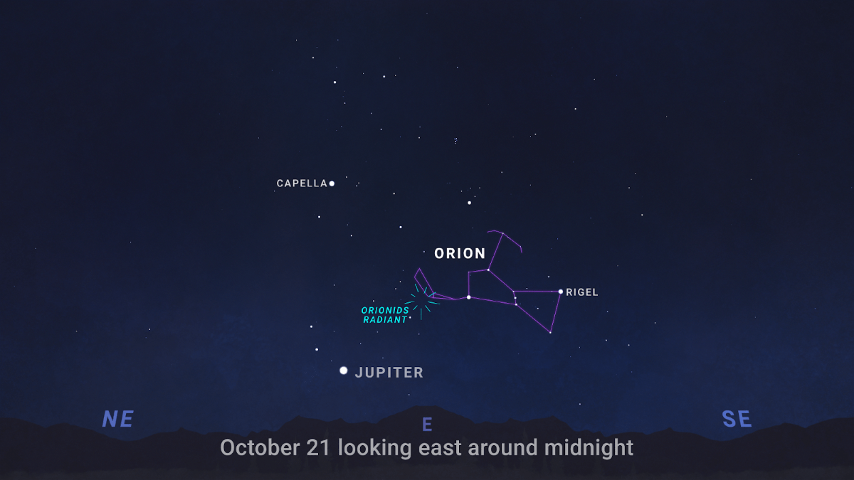 - Oct. 21: The Orionid meteor shower peaks (full duration Sept. 26 – Nov. 22)