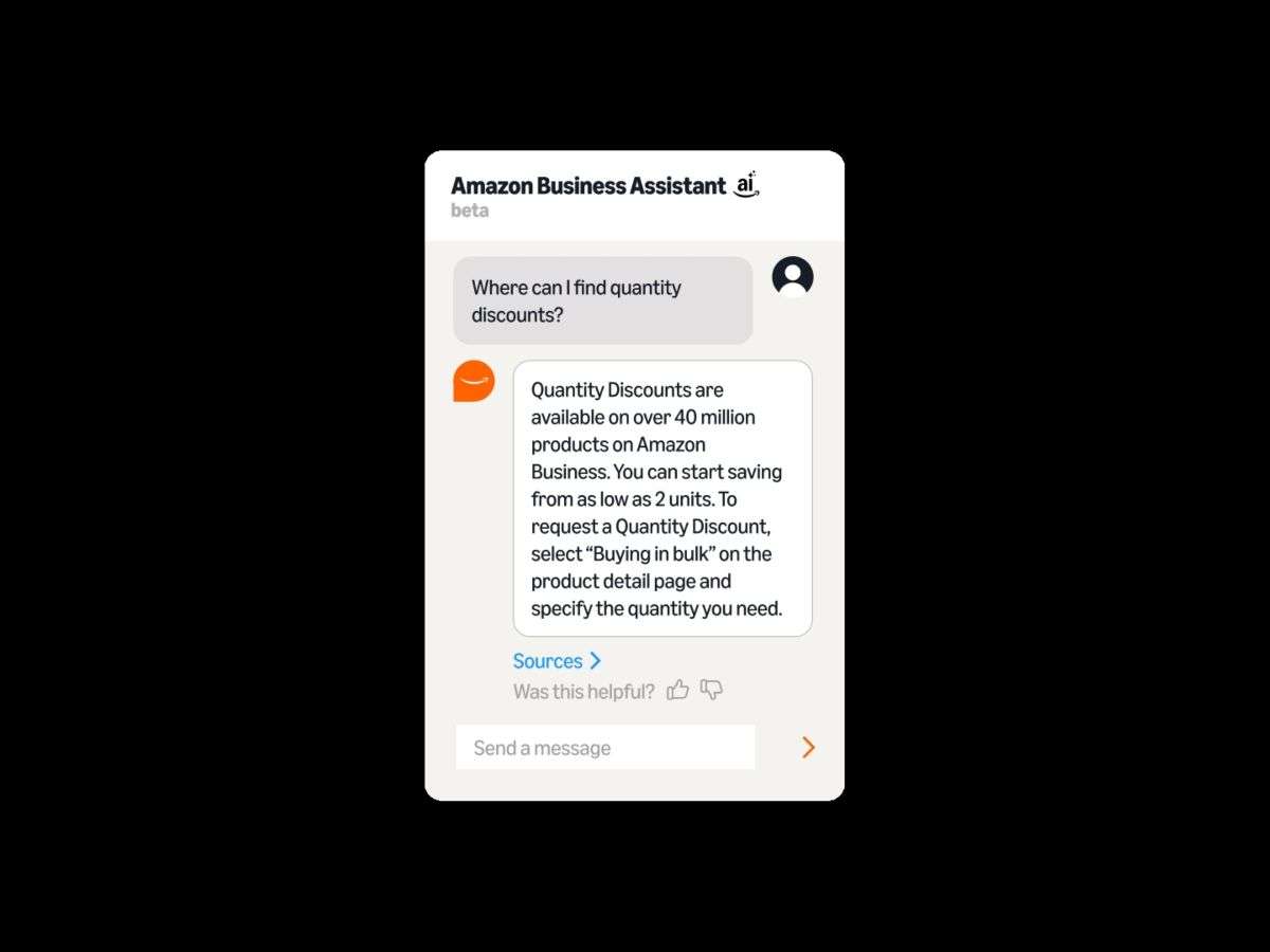 Today, at Amazon Business’ Reshape conference, Amazon (NASDAQ: AMZN) announced a number of new AI-powered solutions including the Amazon Business Assistant to help organizations discover savings, automate routine tasks, and make spending easier and more efficient. These innovations, all powered by Amazon Bedrock, AWS’s fully managed service for building and scaling generative artificial intelligence (AI) applications, represent the next step in Amazon Business’ smart business buying journey. Amazon Business tailors the best of Amazon—everyday low prices, vast selection, and a convenient shopping and delivery experience—alongside a diverse supplier network, reliable and adaptable global logistics system, customizable workflow features, and intelligent automation tools to meet the needs of all organizations, including 97 of the Fortune 100 companies and hundreds of thousands of small business customers worldwide.