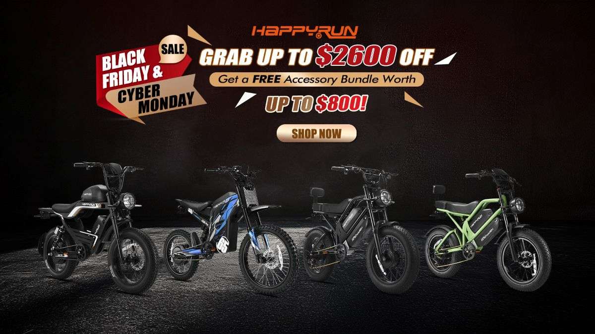 Whether you’re conquering rugged trails on electric dirt bikes, commuting daily on fat-tire e-bikes, or taking weekend adventures with electric cargo bikes, Happyrun makes premium riding more accessible than ever. This Black Friday, get unbeatable value on a Happyrun electric bike—giving you the power and performance you need as you head into 2026.