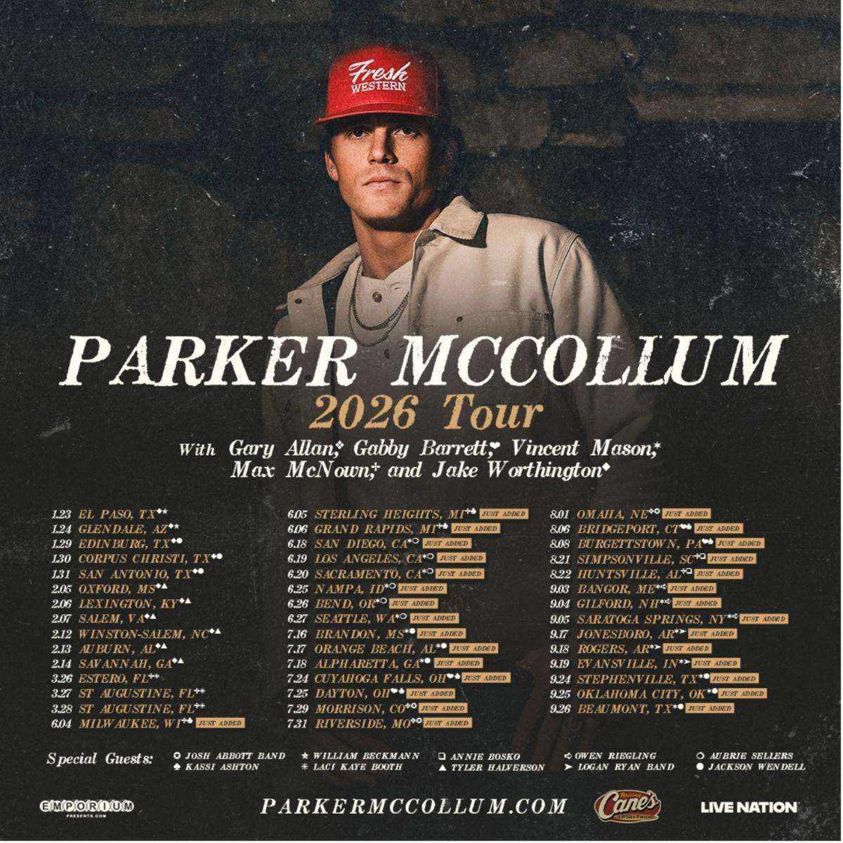 Fresh off the release of his highest debuting album, PARKER MCCOLLUM, this reimagined tour incorporates the new songs fans have eagerly connected with including “What Kinda Man,” “Killin’ Me,” “Big Sky,” “Solid Country Gold,” and many more, alongside all the chart-topping hits. McCollum will be touring throughout the rest of 2025, including a special New Year’s Eve performance at Dickies Arena in Fort Worth, TX on December 31. For additional information, including upcoming show dates and tickets, please visit ParkerMcCollum.com.