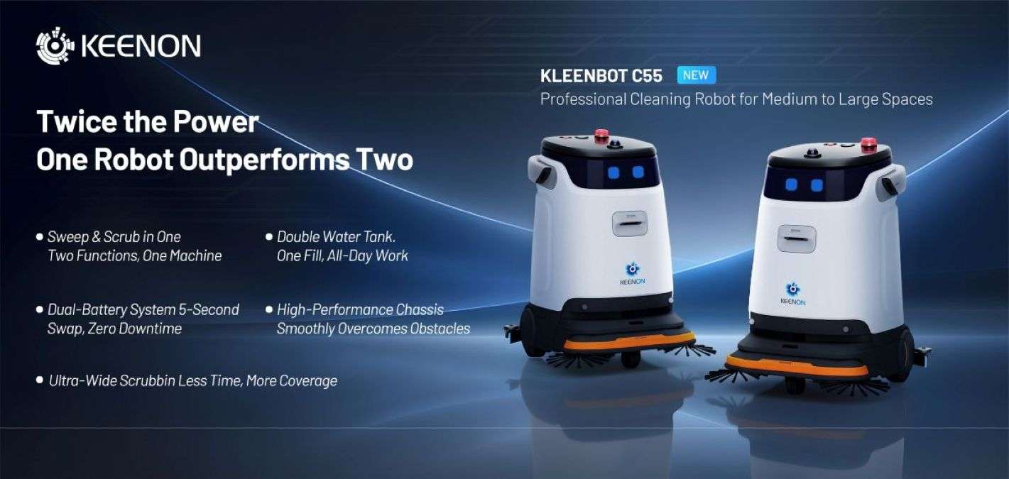 On November 11, KEENON Robotics unveiled its professional medium-to-large area sweeping and scrubbing robot, the C55, at the ISSA North America Expo. This marked the product’s offline debut in North America. The event also showcased an array of star products from KEENON, including the C40 and C30 cleaning robots, the W3 hotel robot, the T10 delivery robot, and the high-payload transport robot S300, demonstrating the company’s leadership in the service robotics sector through its full-category, full-scenario portfolio.