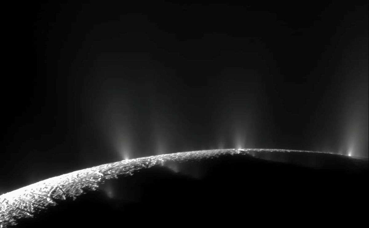 Dramatic plumes, both large and small, spray water ice out from many locations along the famed tiger stripes near the south pole of Saturn’s moon Enceladus in this image released on Feb. 23, 2010. A study published in October 2025 analyzed data from NASA’s Cassini mission and found evidence of previously undetected organic compounds in a plume of ice particles like the ones seen here. The ice particles were ejected from the ocean that lies under Enceladus’ frozen shell. Researchers spotted not only molecules they’ve found before but also new ones that lay a potential path to chemical or biochemical activity.