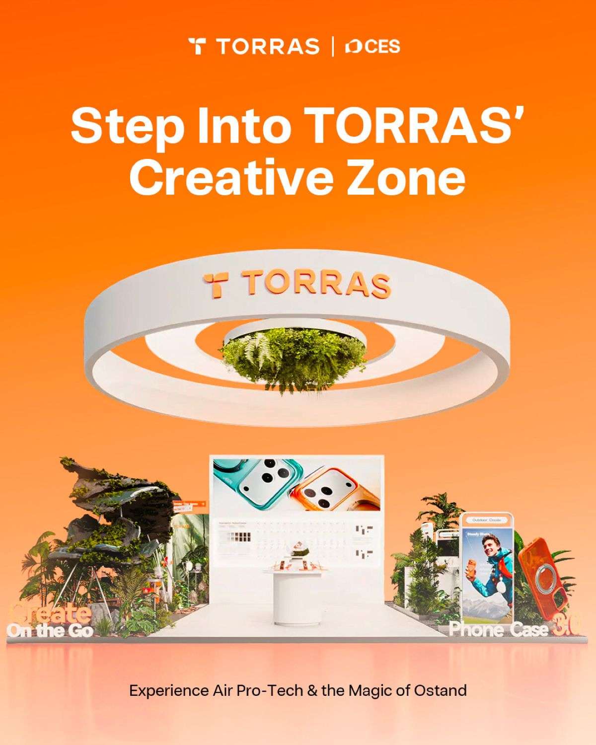 The TORRAS booth will feature a dedicated “Create with Ostand” experience zone, where visitors can get hands-on with TORRAS Ostand cases. Guided by on-site staff, visitors will explore three core modes—Stand, Stick, and Hang—within an outdoor camping-inspired setting, capturing and sharing the energy of CES from multiple angles and bringing their own ideas to life with Ostand.