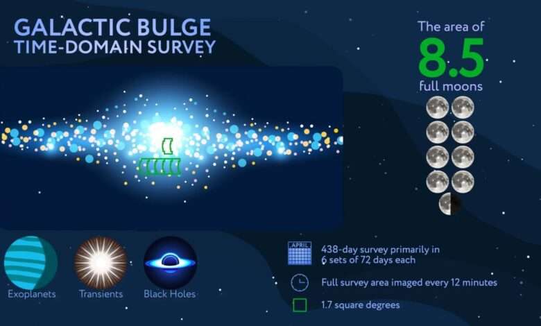 “This survey will be the highest precision, highest cadence, longest continuous observing baseline survey of our galactic bulge, where the highest density of stars in our galaxy reside,” said Jessie Christiansen of Caltech/IPAC, who served as co-chair of the committee that defined the Galactic Bulge Time-Domain Survey.