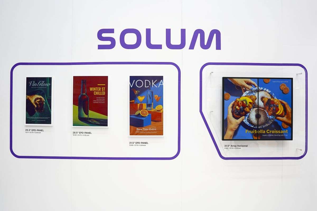 At NRF, SOLUM showcased its E-Paper display lineup ranging from 25.3 to 32 inches. This product line is optimized for digitally replacing signage and promotional boards in high-value product categories such as department stores, premium supermarkets, and electronics/furniture retailers.