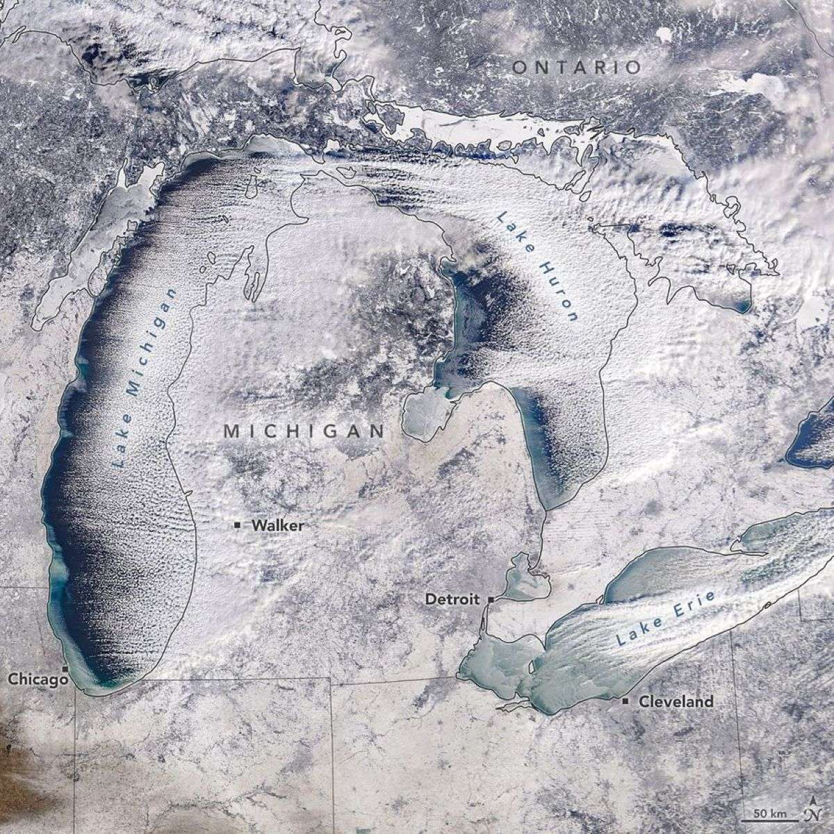 A winter chill descended on the Great Lakes region of North America in January 2026. Some of the effects were apparent in this satellite image as newly formed lake ice and a fresh layer of snow. The image, acquired by the MODIS (Moderate Resolution Imaging Spectroradiometer) instrument on NASA’s Terra satellite, shows the region on the morning of January 20, 2026.