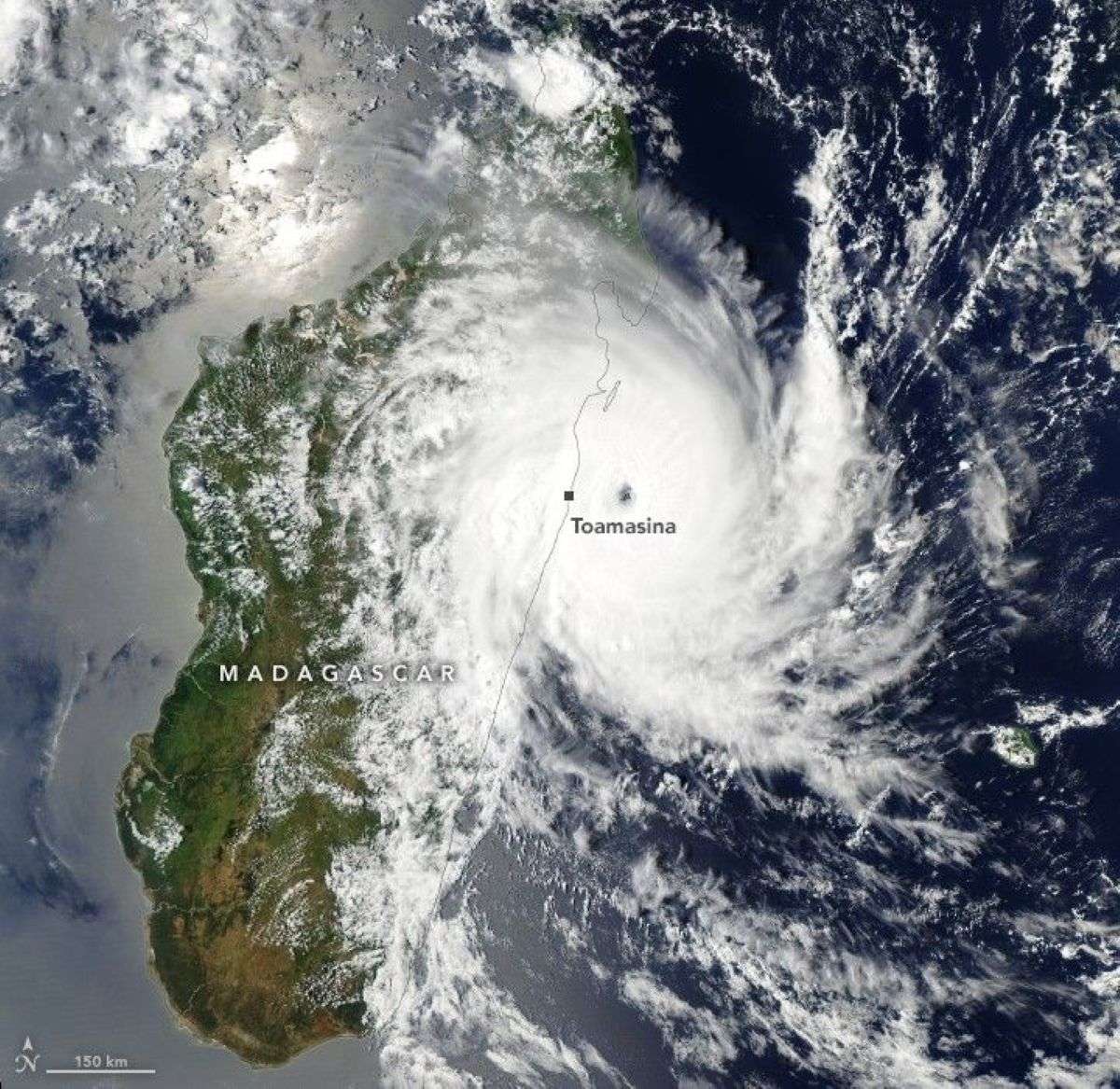 The MODIS (Moderate Resolution Imaging Spectroradiometer) on NASA’s Aqua satellite captured this image of Gezani as it neared Madagascar on February 10, 2026. At the time, the storm was undergoing rapid intensification. Its sustained winds peaked at 200 kilometers (125 miles) per hour before making landfall at Category 3 hurricane strength.