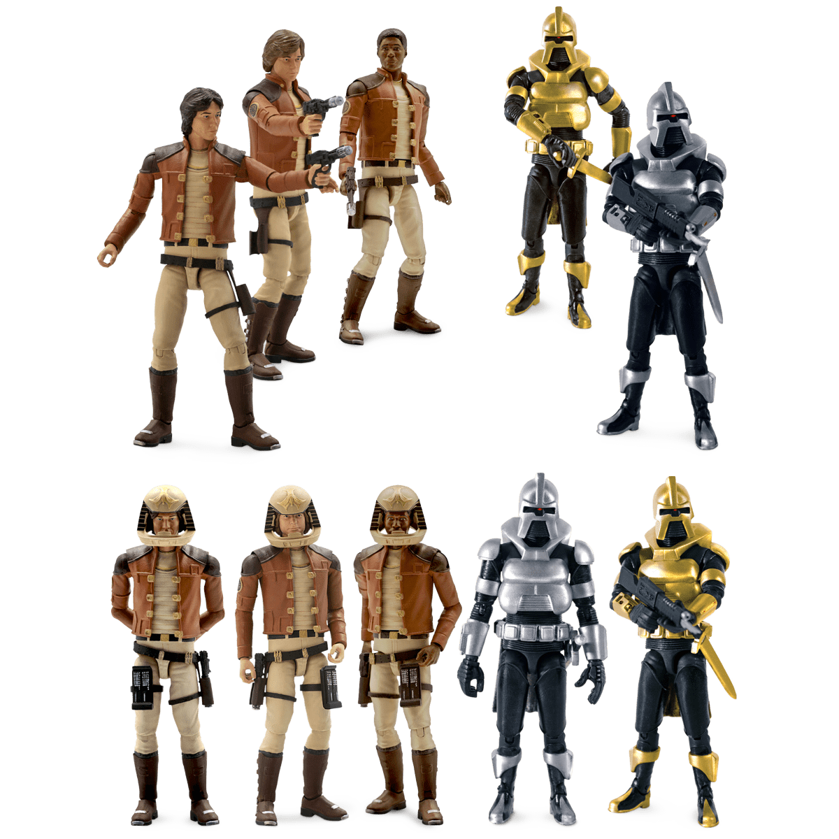| Factory Entertainment is proud to announce the official launch of its highly anticipated 3.75″ Battlestar Galactica Action Figure Line, bringing the iconic heroes, villains, and vehicles of the classic 1970s television series to fans and collectors worldwide. Following an enthusiastic preview at San Diego Comic-Con last July, the line is now available to pre-order at Factoryent.com and through Factory Entertainment’s preferred wholesale and online retail partners. The debut wave features five figures and a Colonial Viper Electronic Vehicle, each designed to capture the look, feel, and spirit of the original series while benefiting from modern sculpting and articulation. Every figure is produced in 3.75″ scale, includes thirteen points of articulation, and comes packaged in retro-inspired window boxes—perfect for both display and play. The first five 3.75″ figures consist of: • Lieutenant Starbuck – with removable pilot helmet, holster, blaster, and leg computer • Captain Apollo – with removable pilot helmet, holster, blaster, and leg computer • Cylon Centurion (Silver) – with sword, scabbard, rifle, and blaster • Cylon Command Centurion (Gold) – with sword, scabbard, rifle, and blaster • Lieutenant Boomer – with removable pilot helmet, holster, blaster, and leg computer The figure assortment available at retail will include Lieutenant Starbuck, Captain Apollo and the two Cylons. A Factory Entertainment exclusive five figure set, including Lieutenant Boomer, will be available through Factory Entertainment’s website, factoryent.com. Complementing the figures is the Colonial Viper Electronic Vehicle, the legendary starfighter of the Ragtag Colonial Fleet. Scaled to fit 3.75″ figures, the Viper features a detailed opening cockpit, removable landing gear, and an included display stand. Light-and-sound effects—operated by remote control—bring the vehicle to life with a light-up cockpit, turbo boost, launch sequence, and laser cannon. The version available at retail will include a Lieutenant Boomer action figure. A version of the Viper without a figure will be available directly from Factory Entertainment’s website, Factoryent.com. |