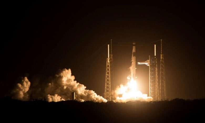 A SpaceX Falcon 9 rocket carrying the company’s Dragon spacecraft is launched on NASA’s SpaceX Crew-12 mission to the International Space Station with NASA astronauts Jessica Meir, Jack Hathaway, ESA (European Space Agency) astronaut Sophie Adenot, and Roscosmos cosmonaut Andrey Fedyaev onboard, Friday, Feb. 13, 2026, from Cape Canaveral Space Force Station in Florida. NASA’s SpaceX Crew-12 mission is the twelfth crew rotation mission of the SpaceX Dragon spacecraft and Falcon 9 rocket to the International Space Station as part of the agency’s Commercial Crew Program. Meir, Hathaway, Adenot, and Fedyaev launched at 5:15 a.m. EST from Space Launch Complex 40 at the Cape Canaveral Space Force Station to begin a mission aboard the orbital outpost.