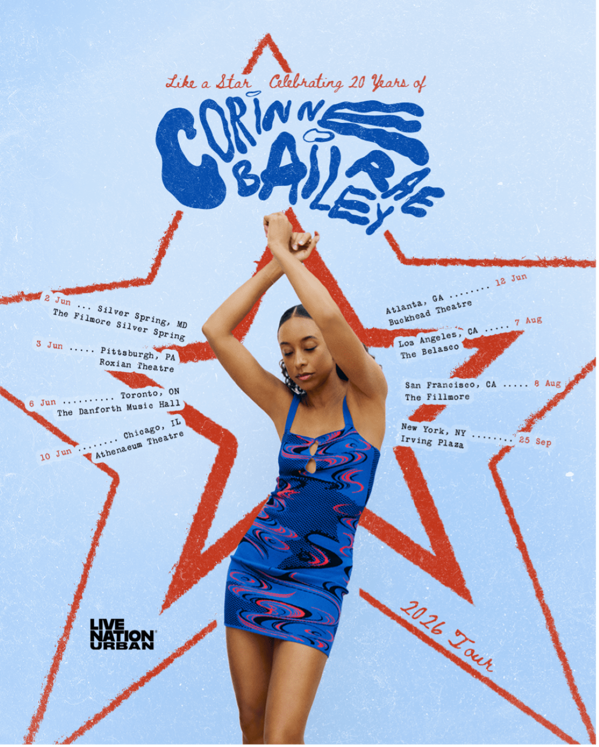 Today, Live Nation Urban (LNU) announces a new tour with Grammy® Award-winning singer, songwriter, and musician Corinne Bailey Rae. Starting in June, Bailey Rae will play select markets in North America — including a show at Roxian Theatre presented by Citizens in McKees Rocks, PA, on June 3, 2026 — as a part of her highly anticipated 20th anniversary tour “Like a Star: Celebrating 20 Years of Corinne Bailey Rae”.