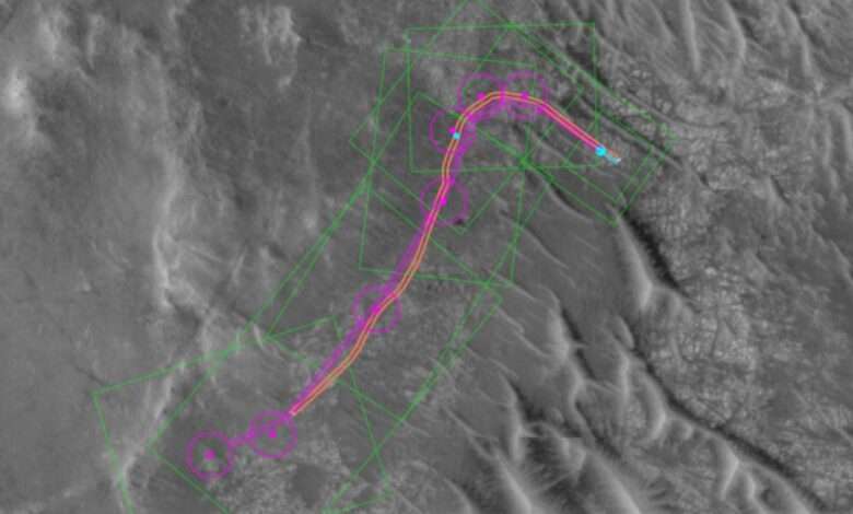 But for Perseverance’s drives on the 1,707 and 1,709 Martian days, or sols, of the mission, the team did something different: Generative AI provided the analysis of the high-resolution orbital imagery from the HiRISE (High Resolution Imaging Science Experiment) camera aboard NASA’s Mars Reconnaissance Orbiter and terrain-slope data from digital elevation models. After identifying critical terrain features — bedrock, outcrops, hazardous boulder fields, sand ripples, and the like — it generated a continuous path complete with waypoints.