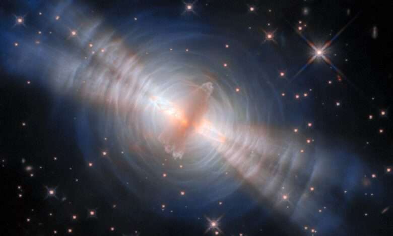 This image from NASA’s Hubble Space Telescope released on Feb. 10, 2026, reveals a dramatic interplay of light and shadow in the Egg Nebula, sculpted by freshly ejected stardust. Located approximately 1,000 light-years away in the constellation Cygnus, the Egg Nebula features a central star obscured by a dense cloud of dust — like a “yolk” nestled within a dark, opaque “egg white.”